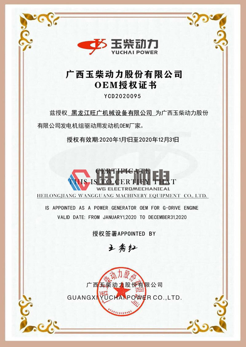 廣西玉柴OEM授權書(shū) - 黑龍江旺廣機械設備有限公司