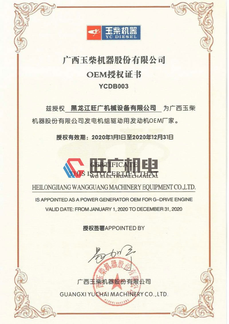 廣西玉柴OEM授權書(shū) - 黑龍江旺廣機械設備有限公司