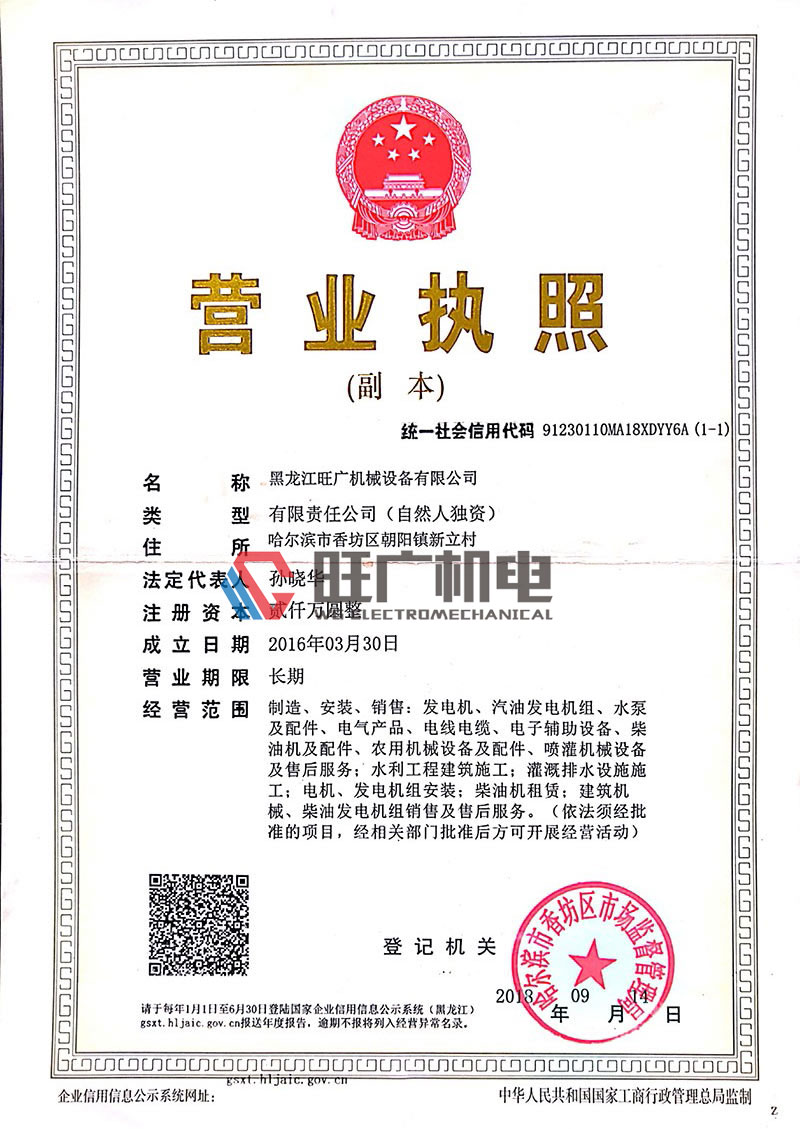 營(yíng)業(yè)執照 - 黑龍江旺廣機械設備有限公司